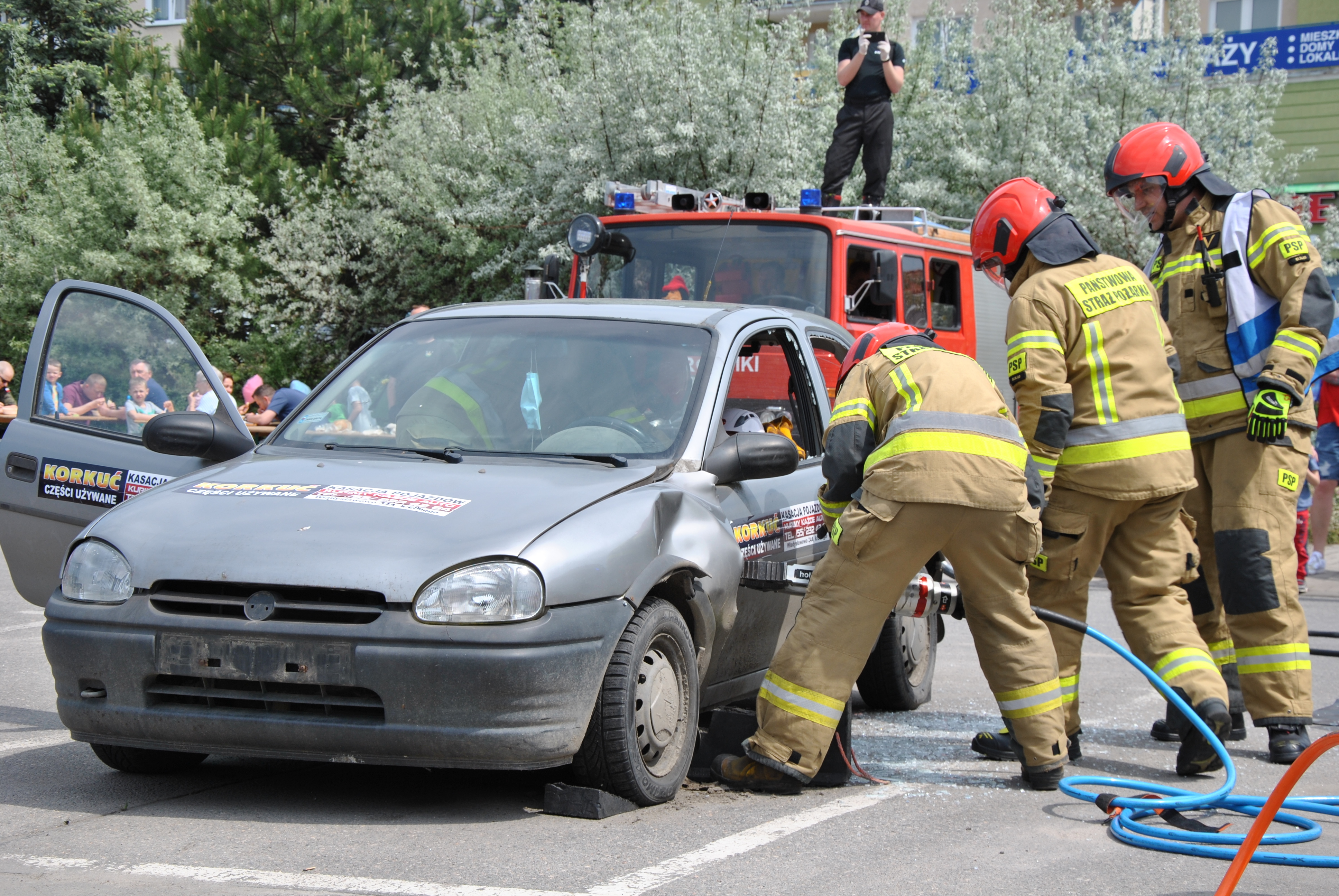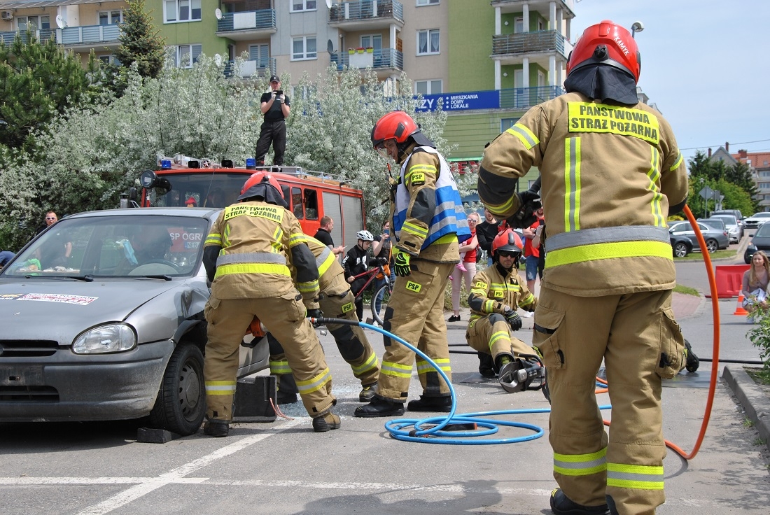 Strażacy podczas ćwiczeń pokazali, jak wygląda akcja ratunkowa podczas wypadku drogowego.
