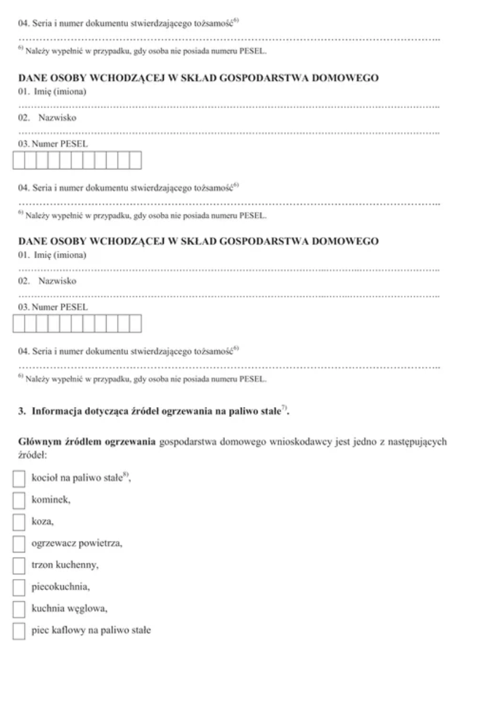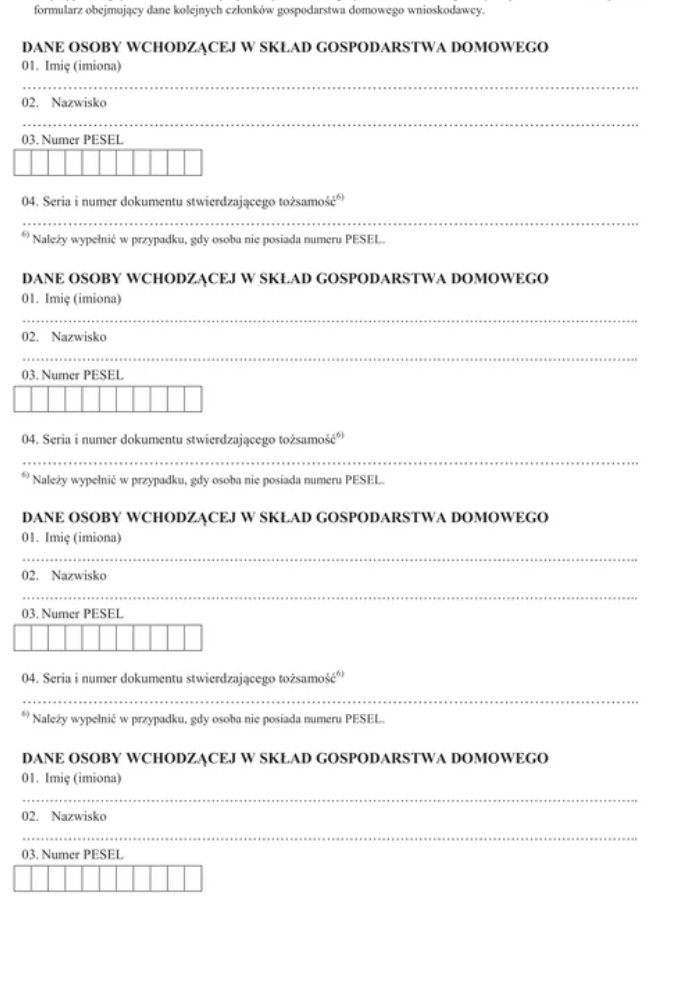 - dodatkowo należy wymienić dane wszystkich osób wchodzących w skład gospodarstwa domowego.