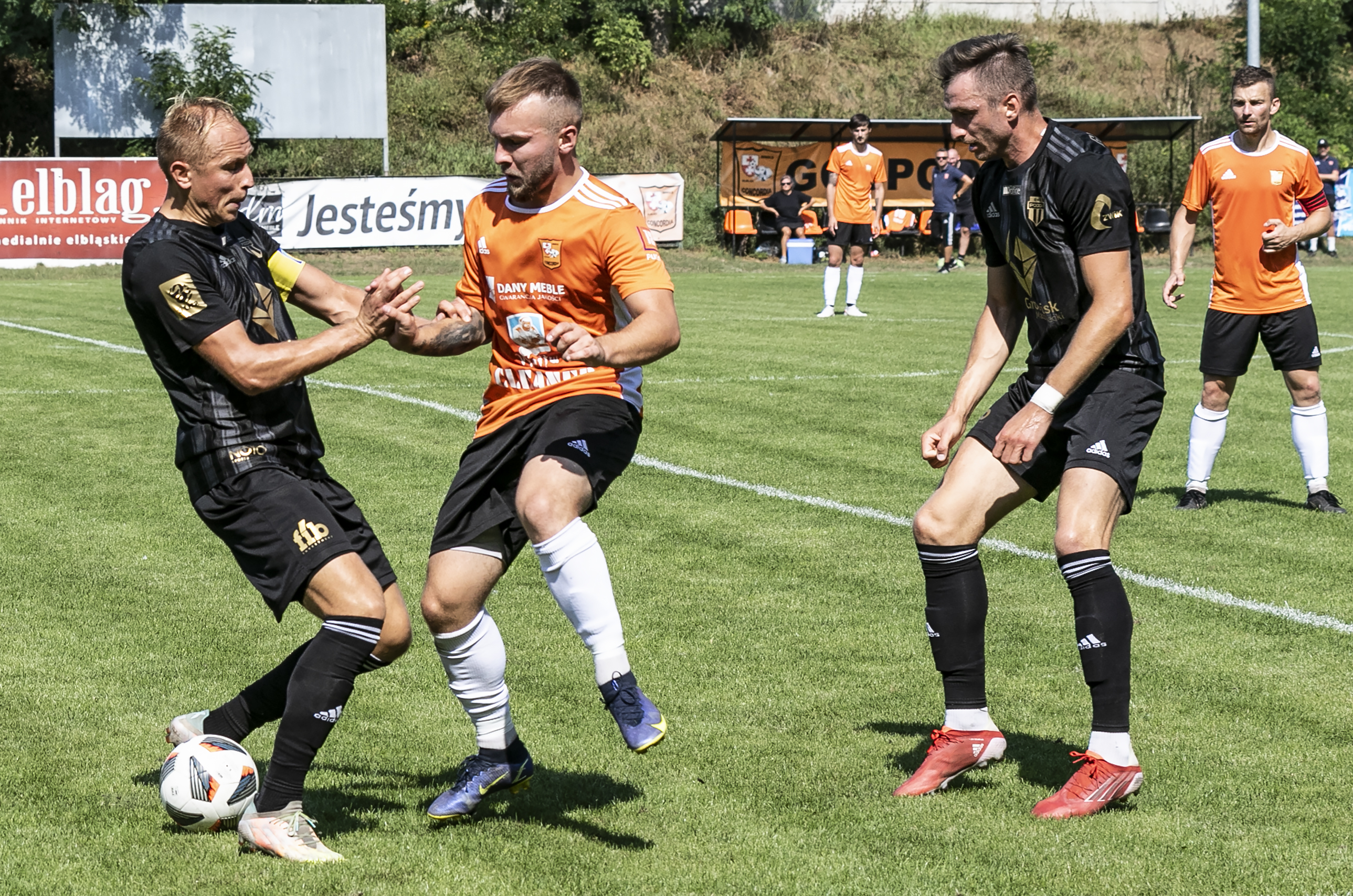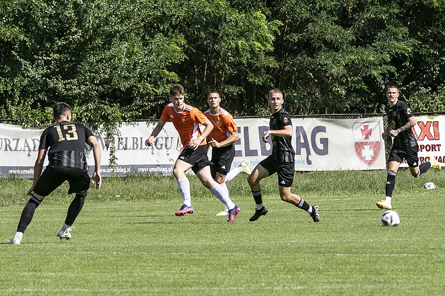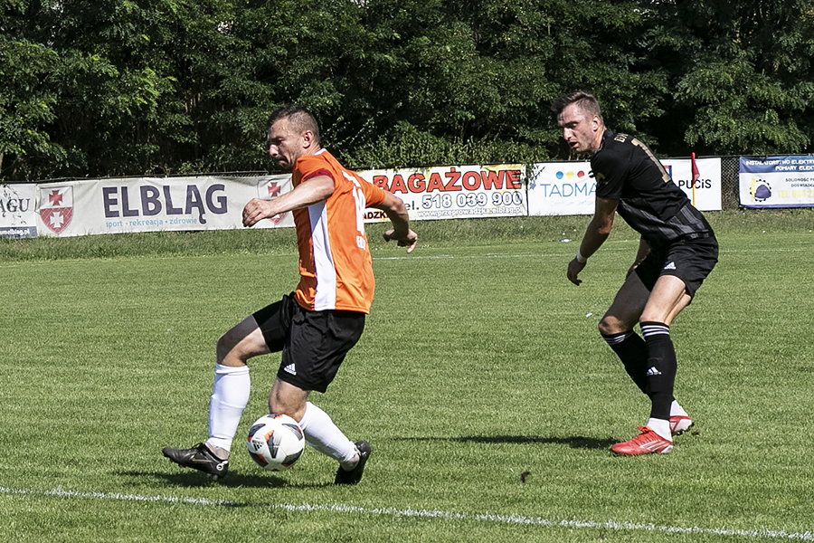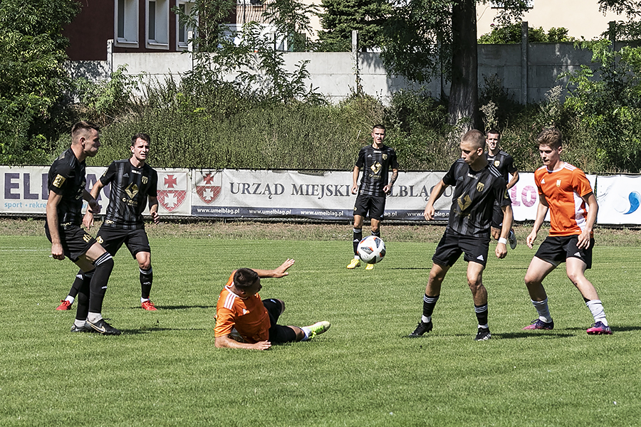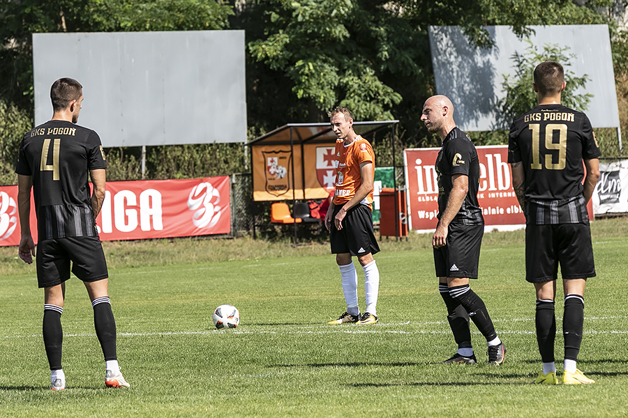 Pogoń mimo osłabienie radziła sobie w tym upale bardzo dobrze i czasem atakowała. W 48 minucie strzał Damiana Jaronia obronił Maciej Woźniak. Jednak to elblążanie częściej kreowali groźne akcje, ale brakowało im skuteczności w najważniejszych momentach.