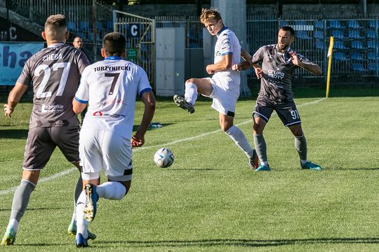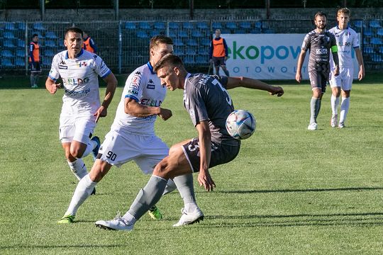 Skąd taka postawa gospodarzy i przewaga gości? – Przed meczem zastanawialiśmy się, czy zagrać 3-5-2, czy może 4-3-3. Wybraliśmy tę pierwszą opcję, którą później trzeba było zmienić – przyznawał Przemysław Gomułka. Jednak zanim to się stało swoje szanse miał także Aron Stasiak. Dwa razy otrzymał podanie prostopadłe, ale najpierw napastnik Olimpii nie zdołał strzelić, a później przeniósł futbolówkę nad poprzeczką.