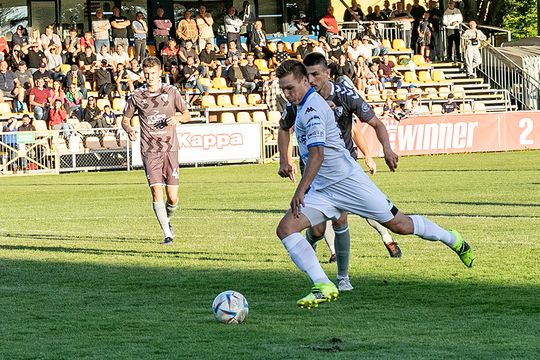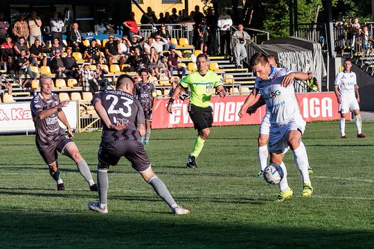 W 68 minucie podanie za linię obrony do wychowanka Olimpii. A ten wyprzedził obrońcę, wypuścił sobie piłkę i był faulowany w polu karnym. Kamil Wenger trafił i Olimpia ruszyła. Miała przewagę i atakowała. Wyglądała bardzo dobrze, szczególnie pod względem fizycznym.