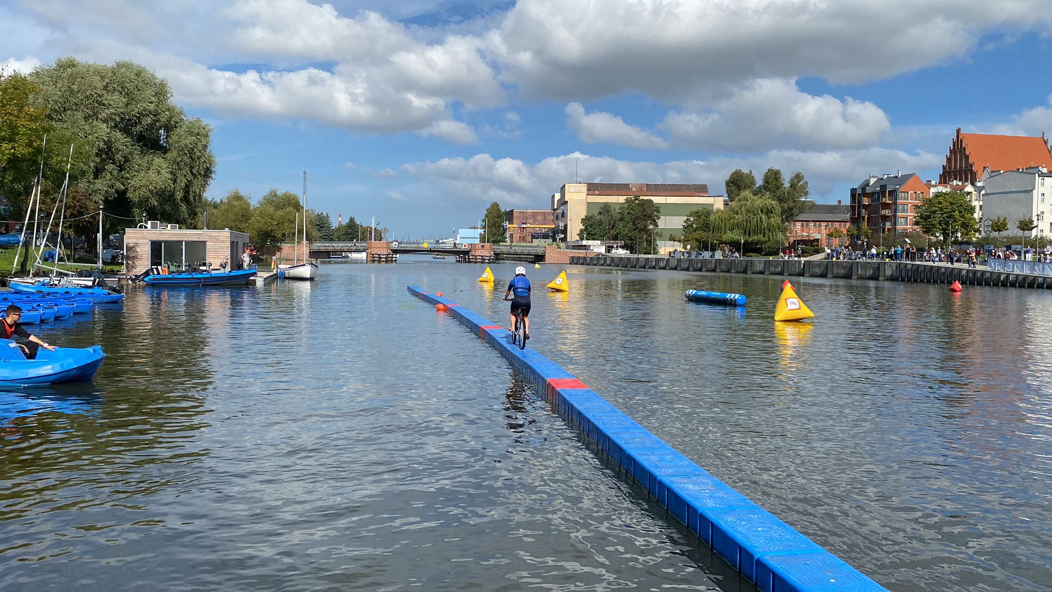 - Po zawodnika i rower podpływa łódź, która jest po stronie, na którą wpadł zawodnik.