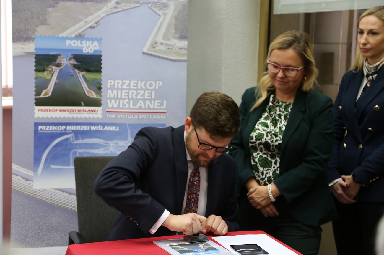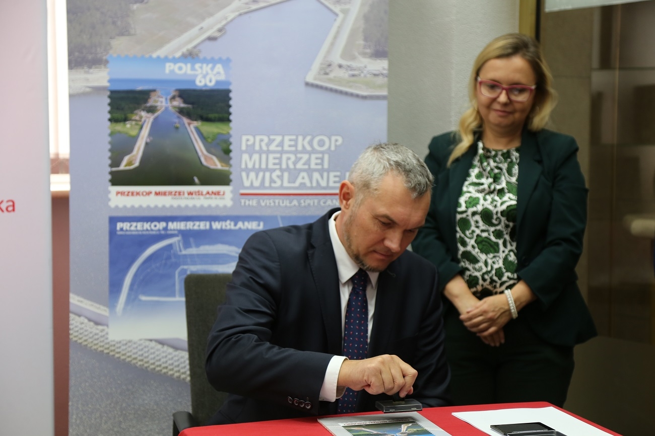 Prezentacja znaczka pocztowego emisji „Przekop Mierzei Wiślanej” miała miejsce 21 września br. w Urzędzie Pocztowym Elbląg 1. W uroczystości wzięli udział Andrzej Śliwka – podsekretarz stanu w Ministerstwie Aktywów Państwowych, Leonard Krasulski – poseł na Sejm RP. Pocztę Polską reprezentowali prezes Krzysztof Falkowski oraz wiceprezes Wiesław Włodek.