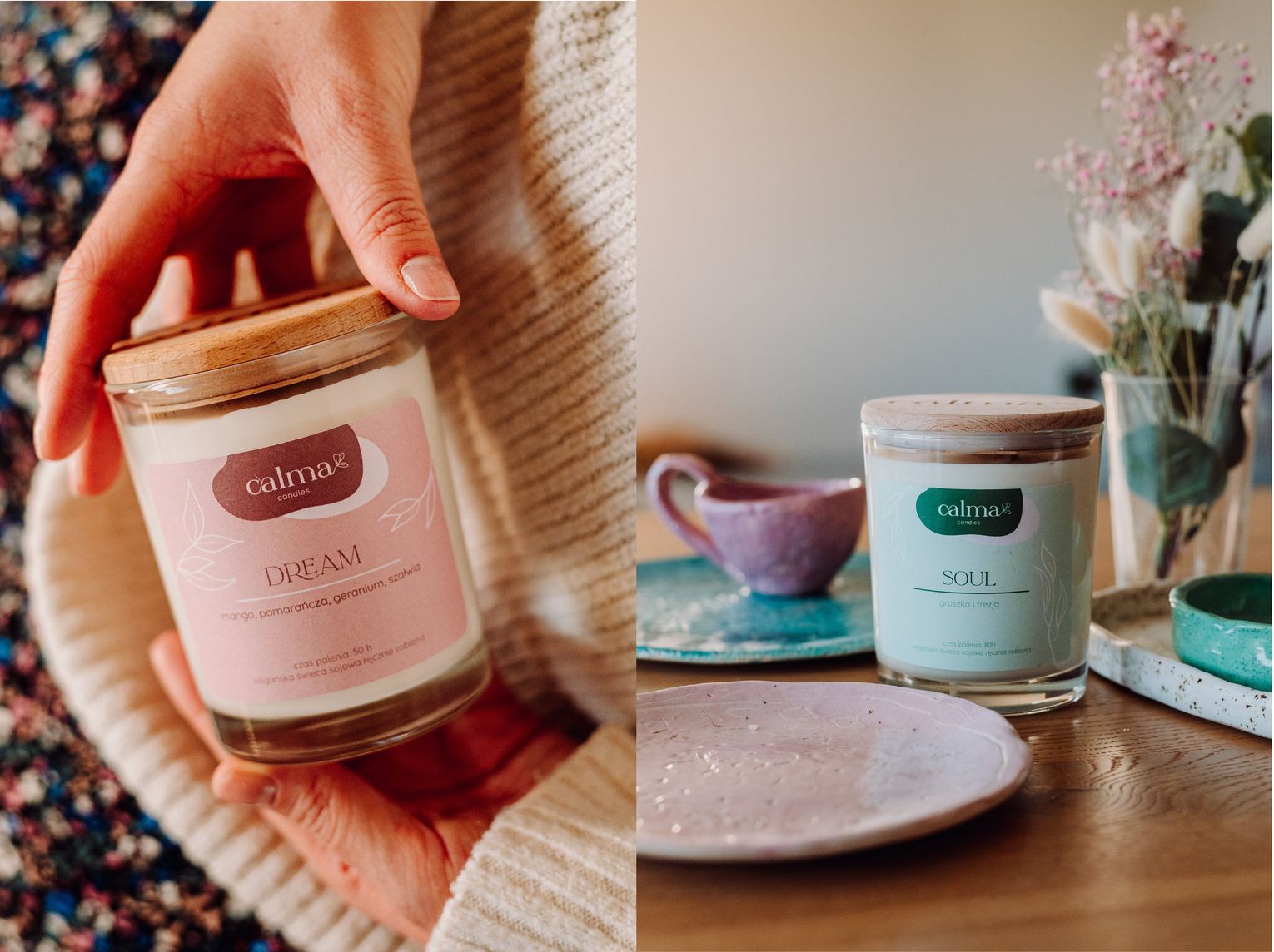 „Agnieszko, bardzo Ci dziękuję za wszystko, co zrobiłaś i robisz dla mnie i Calmy <3 To nie „tylko” logo i „tylko” identyfikacja. Piękno, serce, wartości, które ważne są dla mnie i marki, zebrałaś, zrozumiałaś i poczułaś, a potem przeniosłaś graficznie na papier. I myślę, że to zrozumienie i dogłębne poznanie mnie i marki jest kluczowe dla sukcesu 🙂 Bo tak, dla mnie to, jak teraz wygląda Clama, to ogromny sukces i bardzo duże spełnienie 🙂 Dzięki ogromnej pracy na początkowym etapie, teraz, gdy Calma powoli nabiera rozpędu, wszystkie myśli i pomysły, które pojawiają się w mojej głowie nie się frywolne, a dokładnie ukierunkowane. Wiem co mam robić i jak, żeby komunikacja marki na zewnątrz była spójna i harmonijna. Dziękuję! <3” Monika Pupka-Lipińska właścicielka manufaktury Clama