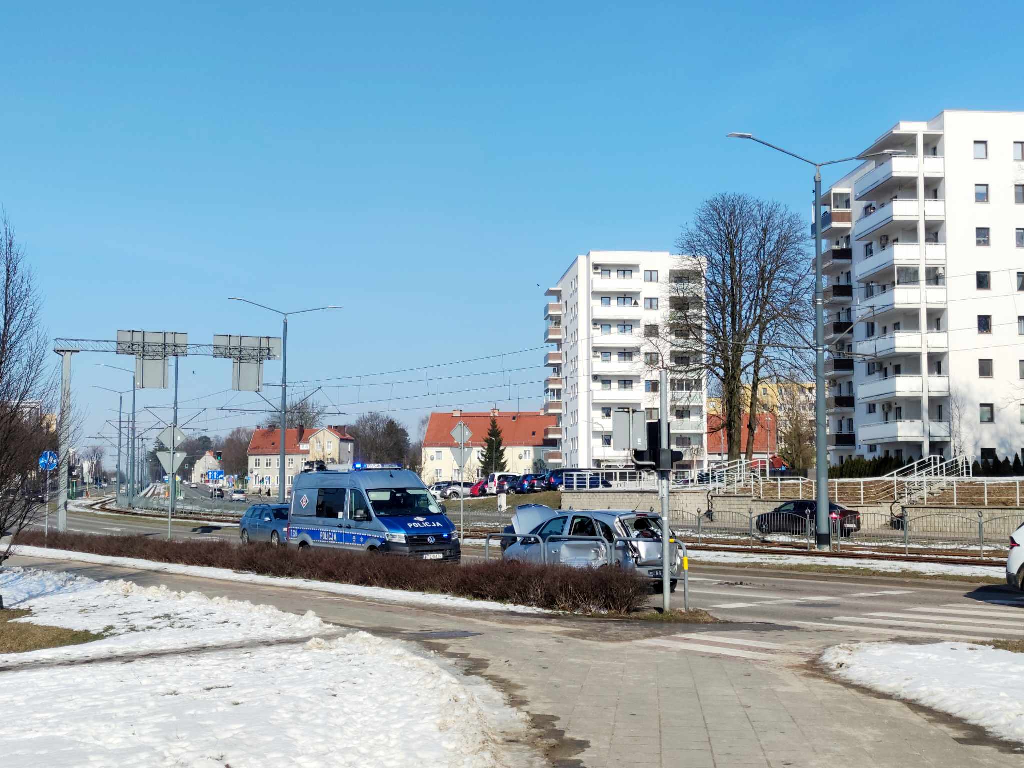 Kolizja auta z tramwajem na ulicy Browarnej