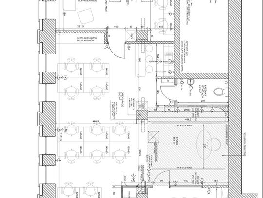 Jak widać na załączonym rzucie funkcjonalnym oraz zdjęciach, lokal został zaprojektowany z myślą o maksymalnej wydajności i komforcie pracy. Przestrzeń jest logicznie podzielona na strefy, co pozwala na płynne funkcjonowanie nawet dużego zespołu.